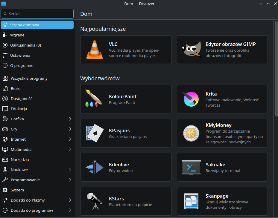 🔍 Discover – centrum aplikacji KDE