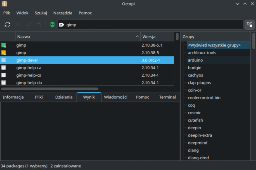 Octopi to menedżer pakietów GUI oparty na pacman, który dodatkowo umożliwia obsługę AUR. To świetny wybór dla tych, którzy chcą wygody graficznej, ale potrzebują pełnej kontroli nad repozytoriami Arch Linux.